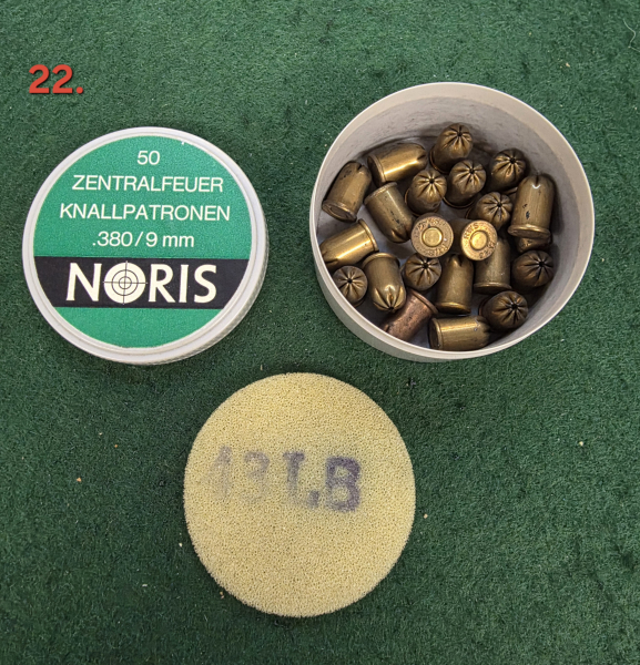 22.) Noris Kartuschen Konvolut Platzpatronen .380 9mm RK SRS Schreckschuss