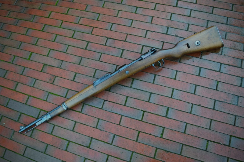 Deutschland K98k 1938 Mauser Code 42 Sammlerwaffe +++ SN 8669 l +++ nummerngleich, bis auf Visierblatt +++ Kal. 8 x 57IS (7,91) mm +++ blanker Lauf, deutliches Zug- Feldprofil +++ fünfschüssig +++ GEMARKT: Hülsenkopf Mauser Code 42 1938 und die üblichen Abnahmestempel, seitlich Mod.98 +++ Schiebevisier skaliert 100 - 2000 +++ scharfe Stempel fast vollständige Brünierung +++ guter bis sehr guter Schaft mit den üblichen Tragespuren und kleiner Auskerbung Höhe Visier +++ Putzstock und Riemenbügeln vorhanden +++ +++ Waffe technisch einwandfrei und guter bis sehr guter Allgemeinzustand, siehe dazu die Bilder +++ Beschuss München 1176 +++ +++ +++ Export only by qualified germany export company +++