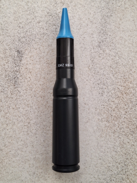 Sie bieten auf ein Patronen-Dummy im Kaliber 25 x 137 mm, der keinerlei Gefahrenstoffe enthält. Hersteller gemäß Bodenstempel ("EMZ"): Eurometaal Zaandam, Niederlande. Bei dem Geschoss könnte es sich um ein Üb-Geschoss handeln, darauf deutet zumindest die blaue Farbe der Geschossspitze hin. Wenngleich der Dummy keinerlei waffenrechtlichen Beschränkungen unterliegt, verkaufe ich diesen dennoch ausnahmslos nur an volljährige Personen, daher auch der Hinweis "Altersnachweis erforderlich", der bei ID-Mitgliedern entfällt. Munition dieses Kalibers wird z.B. in der M242 Bushmaster Maschinenkanone verwendet. Der Dummy besteht aus einer abgeschossen Hülse (ohne Zündhütchen) sowie einem Geschoss, welches nur lose auf die Hülse aufgesetzt ist, d.h. das Geschoss ist nicht fest mit der Hülse verbunden. Das Geschoss ist im unteren Teil aus Metall gefertigt, der Rest besteht aus Kunststoff (schwarzer und blauer Teil). Eine kleines Papp-Röhrchen zur Aufbewahrung des Geschosses gehört ebenfalls zum Lieferumfang. Das Bild zeigt den Artikel, auf den Sie bieten. Versicherter Versand mit Sendungs-ID. Kein internationaler Versand, d.h. Versand nur innerhalb Deutschlands ! Da es sich um einen Privatverkauf handelt, der keinen gewerblichen Hintergrund hat, ist jede Garantie oder Gewährleistung ausdrücklich ausgeschlossen; ebenso ist eine Rücknahme der Ware nicht möglich oder mit anderen Worten: DER VERKAUF ERFOLGT UNTER DEM AUSSCHLUSS JEGLICHER SACHMÄNGELHAFTUNG. Mit der Abgabe eines Gebotes akzeptieren Sie diese Bedingungen; bitte bieten Sie also nicht, wenn Sie mit den vorgenannten Bedingungen nicht einverstanden sind. MyGun ist Bestandteil dieser Auktion. ebenfalls zum Lieferumfang.