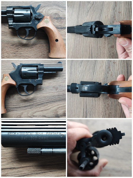 Der Revolver befindet sich in einem gebrauchten Zustand wie man auf den Bildern sieht, ist aber funktionstüchtig.Das Besondere an dem Revolver ist die nicht vorhandene Laufsperre. Der lauf von vorne bis hinten offen und die Bohrung ist etwas mehr wie 5mm im Durchmesser. Das man diesem Revolver damals eine PTB zulassung gegeben hat, ist echt verwunderlich und wäre heute undenkbar. Jedenfalls lässt sich der Lauf so besser Reinigen.