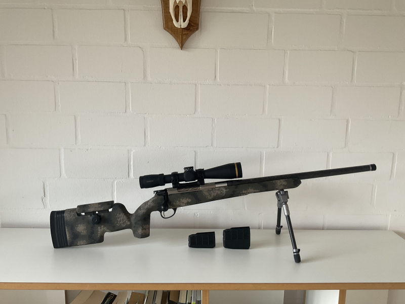 Die reine Büchse ohne Glas und ohne Zweibein hat mich damals rund 5.500€ gekostet, von der langen Wartezeit ganz zu schweigen. Ich denke, dass der von mir aufgerufene Preis für diese einzigartige Büchse absolut fair und nicht aus der Luft gegriffen ist. Wer echtes Kaufinteresse hat und anderer Meinung ist, kann mich gerne kontaktieren, wir können in gewissen Rahmen darüber sprechen, zumal ich noch 4 Schachteln Barnes TTSX mit 165grs für diese Waffe zu liegen habe. Das abgebildete Spartan Carbon Zweibein gehört ebenfalls nicht zur Auktion, kann aber auch in die Verhandlungsmasse mit einfließen. Auch wenn ein Interesse an der reinen Barreled Action besteht, können Sie mir gerne ein Angebot machen.