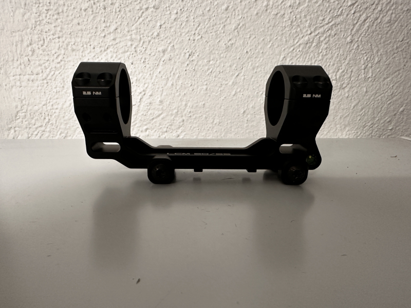 Die IEA LCM "Lightweight Combat Mount" ist eine ultraleichte Montage aus hochfestem TS7075 Aluminium. Die beiden Rückschlagstollen gewährleisten einen sicheren Sitz auf der Picatinnyschiene (MIL-STD-1913 und STANAG2324). Die gut sichtbare, integrierte Wasserwage verhindert ein Verkanten beim Schuß. Die optische Achse befindet sich 39mm über der Picatinnyschiene. Somit ist eine Verwendung von Vorsatzgeräten kein Problem. Gewicht: 173g Länge: 125mm Breite: 51mm Höhe: 65mm Ringdurchmesser: 30mm Höhe der optischen Achse: 39mm Vorneigung: keine