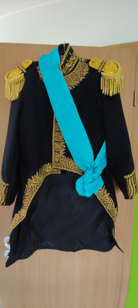 Zum Verkauf steht hier eine aufwendig geschneiderte Generals Uniform in vollen Stickereien diese ist wunderschön zu tragen und anzusehen des Trägers dazu gehören 1 paar goldfarbene Generals Epauletten 2 Sterne mit dicken Raupen und dazugehörig eine hellblau farbige SChärpe. Diese Uniform wir , alleine schon durch den aufwendigen Aussehens und Verarbeitung vollens Verpackt und in einer Schutzsack versendet.