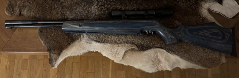 Zur Auktion kommt mein HW 97K Luftgewehr mit Unterhebelspannung und individuellem Schichtholzschaft im Kaliber 4,5 mm und Zielfernrohr.