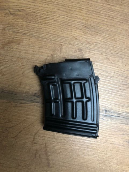 Guten Tag, hier haben Sie die Möglichkeit das abgebildete 10 Schuss Magazin im Kal. 7,62x54R zu erwerben. Ich habe es in einem Konvolut gekauft und selbst nie benutzt. Mir wurde beim Kauf gesagt, dass es für die SVD Dragunov oder Tigr bestimmt ist. Ob es zwischen dem militärischen SVD und dem zivilen Tigr irgendwelche Unterschiede gibt, ist mir nicht bekannt, bitte prüfen Sie die Nutzbarkeit bei ihrer Waffe Mittels des Bildes selbst nach.