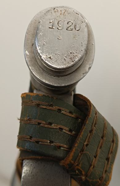 Sehr seltene IOD 89, komplett aus Metall, hergestellt 1916 bei „Horster Solingen“ Nummergleich J.R.13. Holzgriff, datiert 1920, Weimarer Portepee.