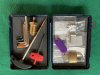 Ein Adlerauge 0,50 Dioptrien, die original Walther Diopterrückverlagerung, ein 300bar Füllstutzen, div. Werkzeug und Klarsichtkorne, 2 Stück Block Club Distanzstücke 10,0 mm, 6 Stück Distanzstücke 5,0 mm, Bedienungsanleitung, Schussbild und eine Werkzeugbox. Eine Verschlußklappe ist leider an der Box abgebrochen, jedoch verschließt die zweite Klappe die Box ausreichend.