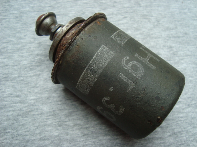super erhaltene dt. Nebel Handgranate 39B, völlig frei von gefährlichen und verbotenen Stoffen, sehr schöne weiße Originalbeschriftung Nb Hgr 39B, einige kleine Löchlein!!! die original Farbe ist zu 95% erhalten, dazu der wunderschöne originale Brennzünder BZ39 mit roter!!!! Kappe, 0 Sekunden Verzögerung, ein seltenes Teil, in diesem Zustand nicht mehr zu finden