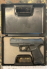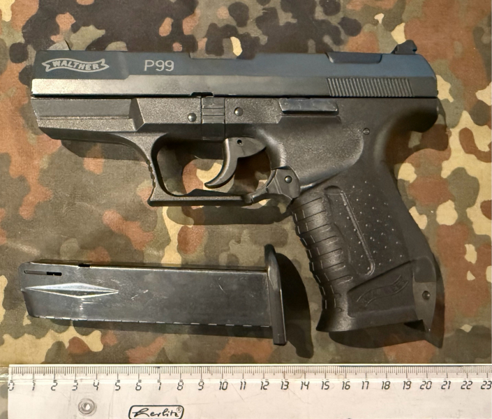 Pistole Walther P 99 im Kaliber 9 mm P.A.K. Made in Germany! Kunststoffgriffschalen, PTB 762. Walther Fertigung! Sie besitzt einen funktionierenden Schlittenfanghebel (nicht angedeutet, wie bei manchen Modellen) und die Entspanntaste auf der Schlittenoberseite der ersten original Modellserie. Keine Gebrauchsspuren. Im Walther Kunststoffkoffer. Ohne weitere Zubehör.