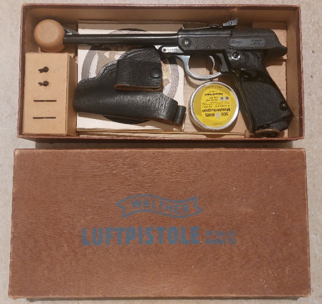 Walther LP53 aus Nachlass, lässt sich knicken und löst dann aus, ist also nach meinem Ermessen funktionsfähig. Lag mindestens die letzten 40 Jahre unbenutzt im Keller.