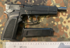 Pistole Browning Mod. GBDA 9 im Kaliber 9 mm P.A.K. Nachbau der FN High Power. Made in Germany! Kunststoffgriffschalen, PTB 592. Sie besitzt einen funktionierenden Schlittenfanghebel (nicht angedeutet, wie bei manchen Modellen). Minimale Gebrauchsspuren. Mit Abschussbecher für Pyromunition.