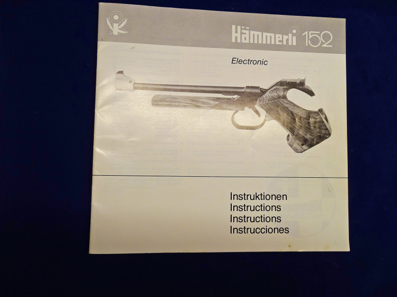 Ich biete zum Kauf an: Bedienungsanleitung für Freie Pistole Hämmerli 152 Electronic. Dies ist ein Privatverkauf: Keine Garantie, keine Gewährleistung und keine Rücknahme. Bieten Sie bitte nur, wenn Sie mit den Verkaufsbedingungen einverstanden sind. Versandkosten: Deutschland 1,80 Euro, International3,30 Euro.