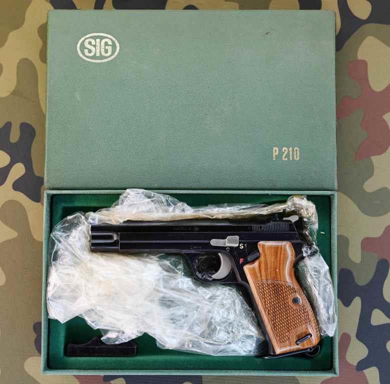 Die Pistole SIG P210 ist ein Rückstoßlader mit einer Verriegelung im Browning-Petter-System. Im Gegensatz zu den ersten Browning-Pistolen (Typisches Beispiel Colt M1911) geschieht die Entriegelung nicht durch eine Kette, sondern durch eine Kulisse. Untypisch für eine für das Militär gefertigte Pistole ist die geringe und präzise Fertigungstoleranz und die Herstellung durch Ausfräsen aus Vollmaterial. Dadurch ist sie bei Sportschützen sehr beliebt. Die Militärversion wird seit längerer Zeit nicht mehr hergestellt und wurde in den 80er-Jahren durch die SIG P220 abgelöst. Die Versionen P210-5 HF und P210-6 HF werden mittlerweile nur noch für sportliche Zwecke gefertigt. Die Waffe ist ein Beispiel technischer Superlative und von Schützen und Sammlern hoch bewertet. Selbst die Militärversion braucht den Vergleich mit Sportwaffen nicht zu scheuen, da lediglich die Visierung, die Feinabstimmung des Abzugs und minimale Detailänderungen bei den Wettkampfversionen ins Gewicht fallen.