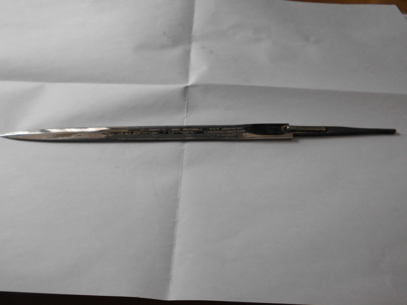 Biete hier eine Klinge für einen Marineoffiziersdolch von Alcoso, Solingen. Klingengewinde Top mit Drückerfeder auch Top. Klingenätzung am Rand etwas abgerieben/ abgeputzt. Verkauf ab 18 Jahre und unter strikter Einhaltung der § 86,86a und 130 des STGB. Versand Versichert. Für Transportschäden übernehme ich keine Haftung. Laut EU Richtlinien keine Garantie oder Rücknahme. Versand D, Belgien, Österreich, Tschechien. Ausland dann 19,95 Euro. Fragen werde ich schnell beantworten.