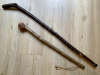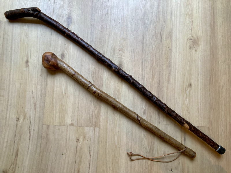 Ich biete hier ein Konvolut von handgefertigten irischen Shillelaghs an, die berühmten Kampfstöcke aus Irland. Diese Stöcke aus Blackthorn (Schwarzdorn, Schlehe) wurden in Irland zur Selbstverteidigung und in den berühmt-berüchtigten Faction-Fights benutzt. Handgefertigt in Irland vom Traditions-Stockmacher Joe Taylor. Es handelt sich hierbei um zwei Stöcke: Einmal ein aus Blackthorn gefertigter Gehstock, schön rustikal und knorrig, ca. 98 cm lang, ca. 450 g schwer, mit Endkappe aus Gummi. Dazu ein sehr schönen Kampf-Knüppel aus Hawthorn (Weißdorn) mit lederner Handschlaufe und einem massiven Keulenkopf. Länge ca. 78 cm, Gewicht ca. 500 g. NP zusammen 120 Euro. Da dies ein privater Verkauf ist, gewähre ich keine Garantie und kein Rückgaberecht (siehe EU-Recht).