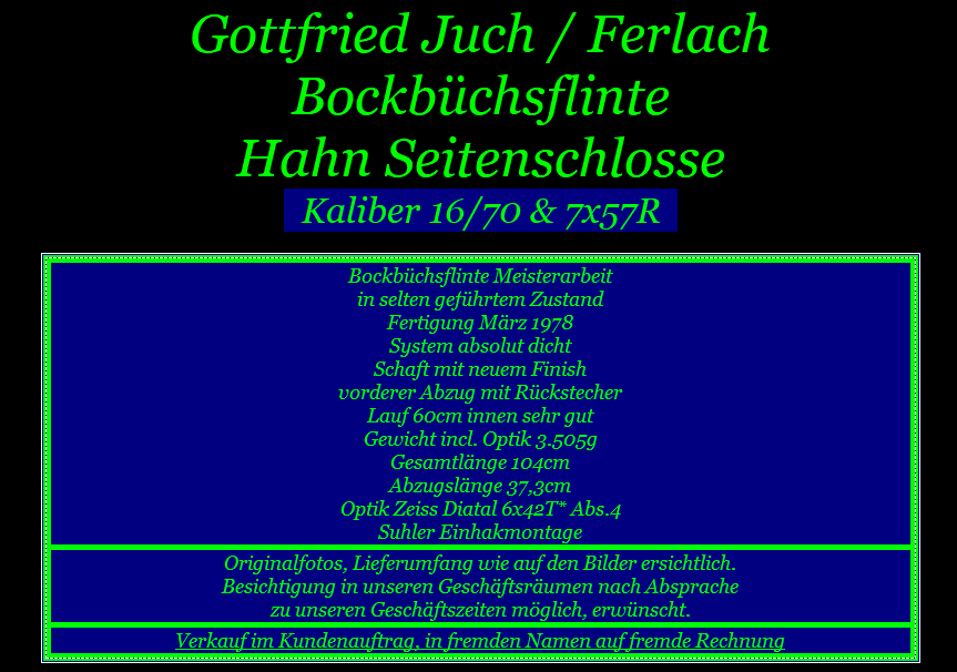 Artikel-ID: 20186859  •  ArtikelNr. des Verkäufers: 12407  •  Kategorie: Jagdwaffen > Kombinierte Waffen