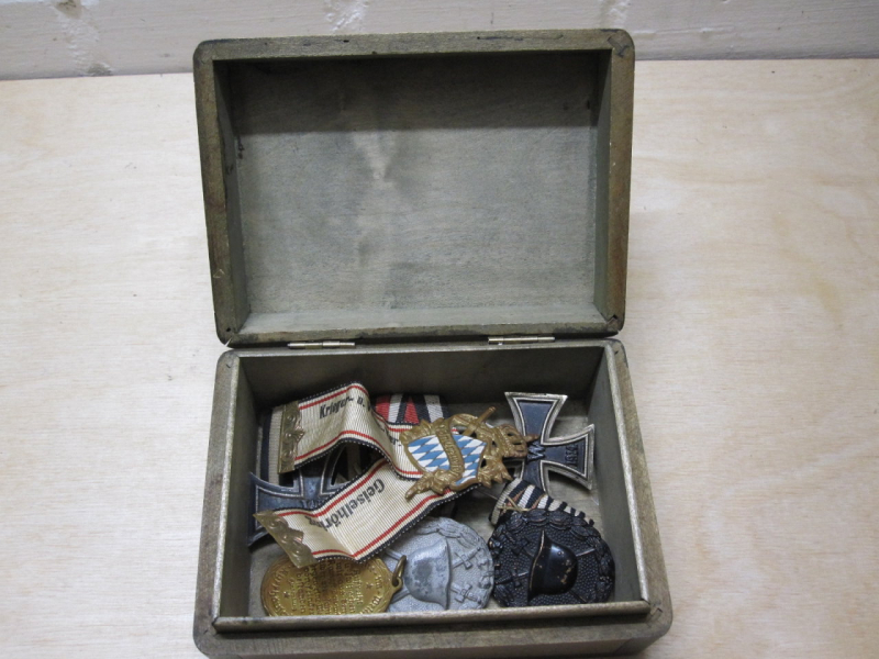 1. Weltkrieg in einem Holzkistchen. Alters- und Gebrauchsspuren, zum Teil mit