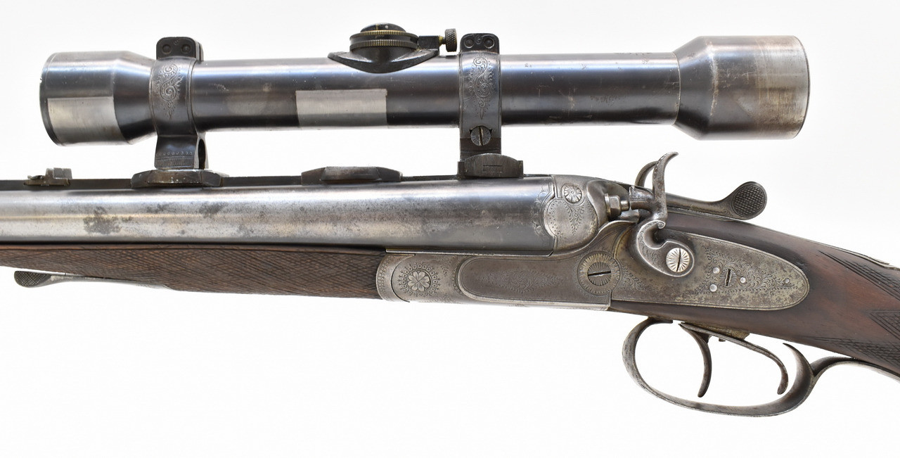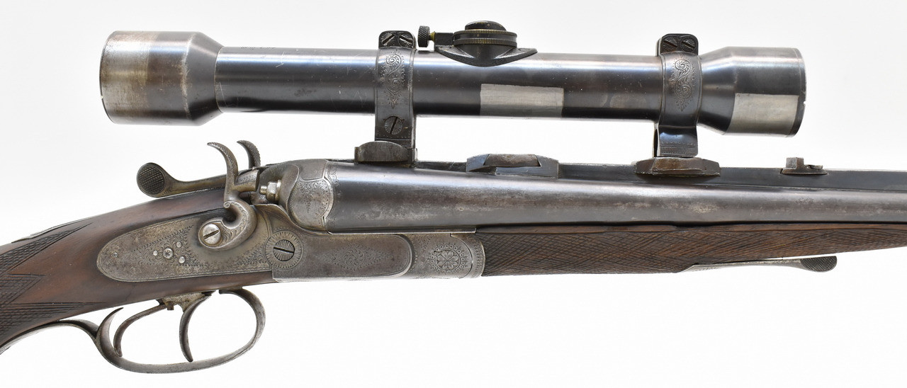 Die Büchsflinte hat matte Läufe und eine stark beriebene Brünierung.