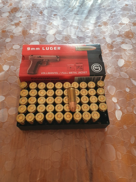 Ich biete hier Munition von Geco an. Kaliber 9mm Vollmantel.