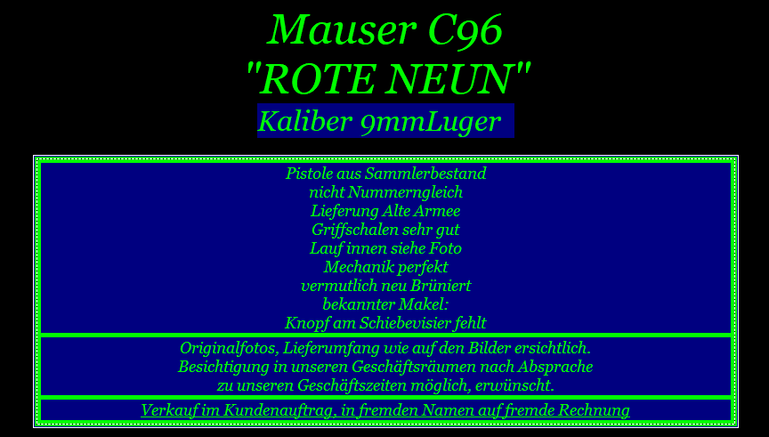 Artikel-ID: 20187054 ArtikelNr. des Verkäufers: 12252 Kategorie: Sammlerwaffen/-munition > Kurzwaffen > 1900 - 1945