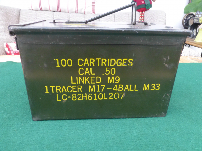 Dieser Klappdeckelmunitionskasten (aus Stahlblech) ist altersgemäß in einem guten Zustand.