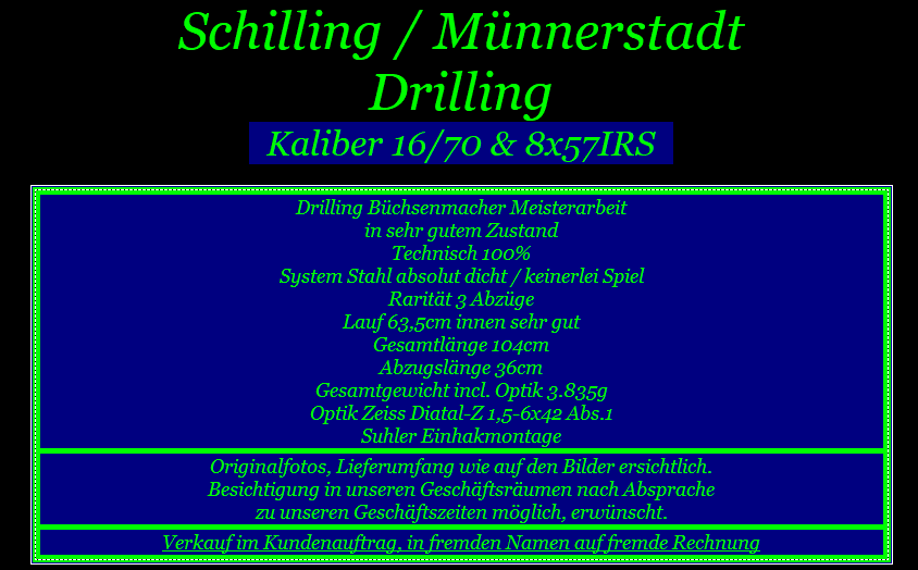 Artikel-ID: 20187318  •  ArtikelNr. des Verkäufers: 11344  •  Kategorie: Jagdwaffen > Drillinge