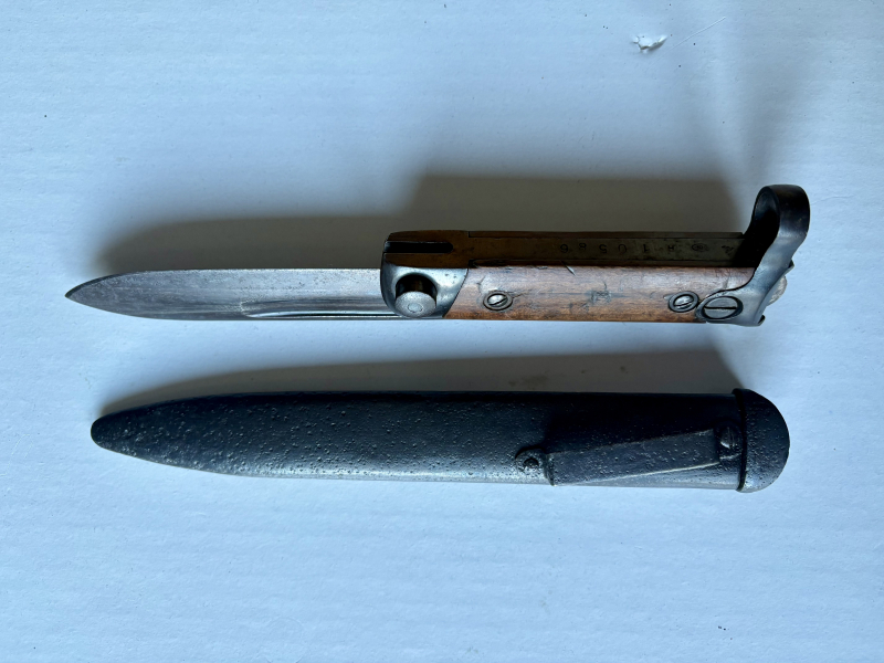 For sale a very nice example of the Carcano M1891/38 folding bayonet. I ship only inside EU. If you need more photos and infos just ask me! Private offers are welcome.