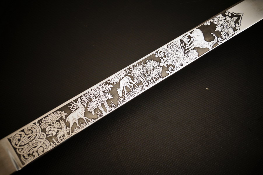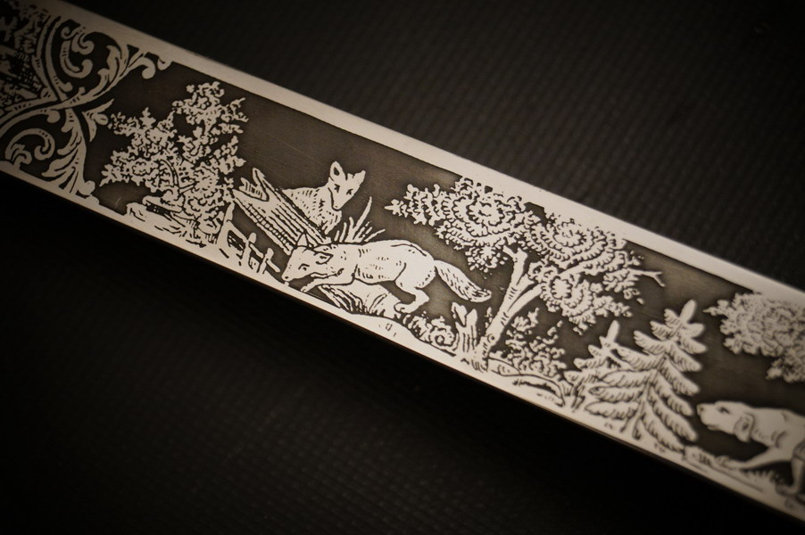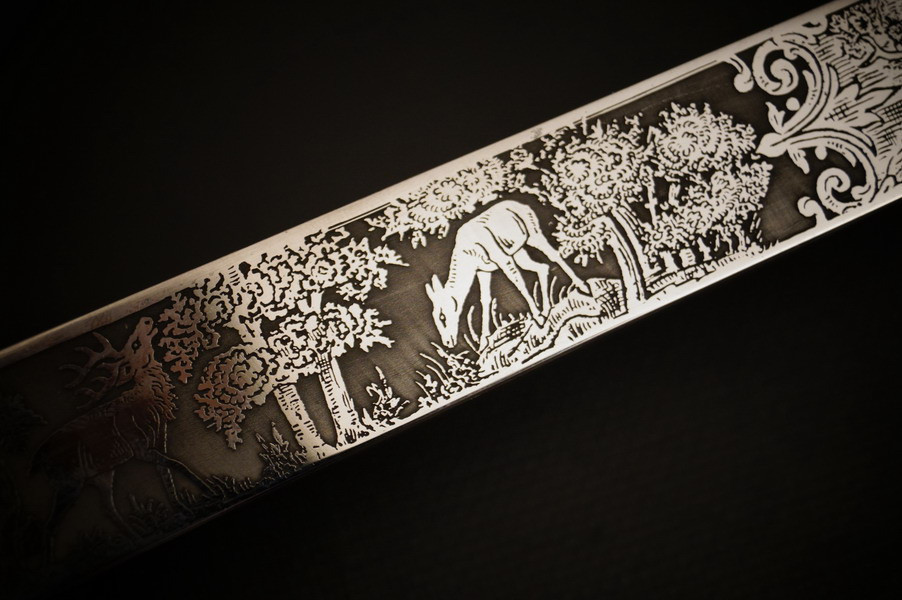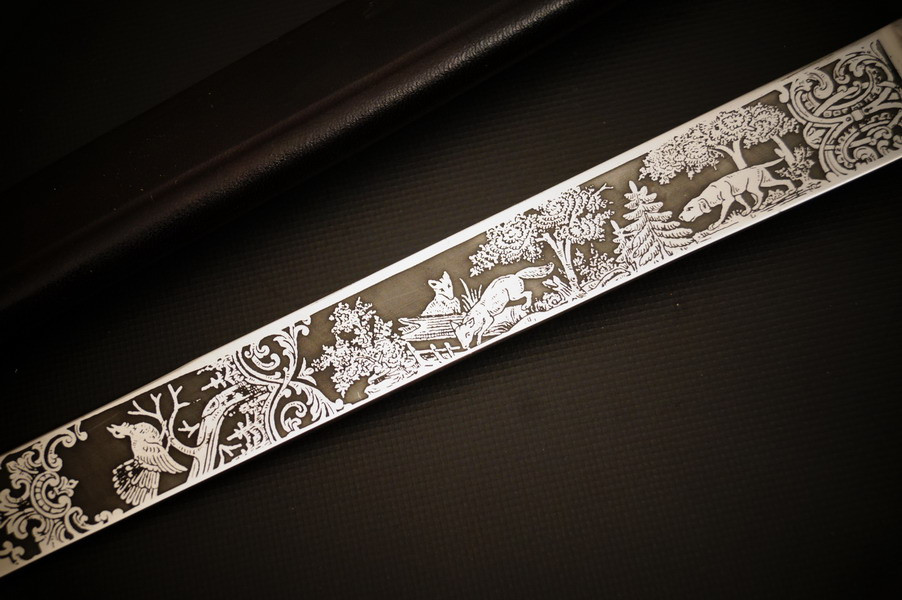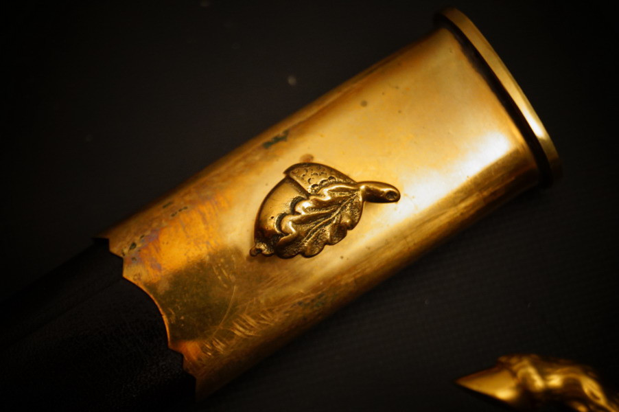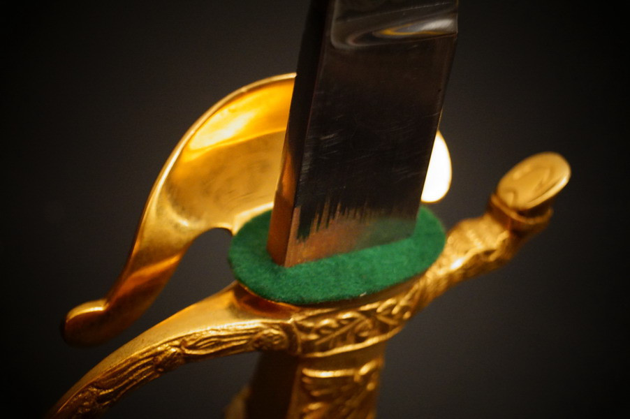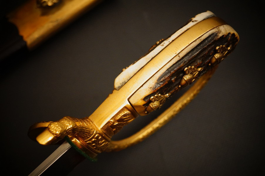 Fundzustand. Bestzustand ! Klinge mit dreifacher Ätzung und Hersteller Alcoso Solingen - Alfred Coppel Solingen. Echthorngriffschalen und sehr gute Vergoldung. WK2