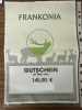 Ich verkaufe hier einen Gutschein von Frankonia im Wert von 145,00 €. Es handelt sich um einen Privatverkauf ohne Garantie oder Gewährleistung. Es ist Barzahlung oder Überweisung möglich. Bei Fragen einfach melden.