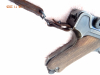 Allem die Träger der Marine und Ari 08 sicherten so die Waffe gegen Verlust ab. Die Riemenschlaufe wurde über der Schulter getragen,