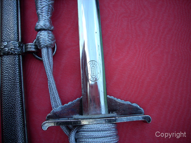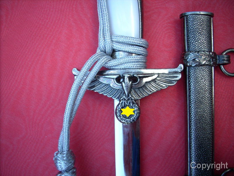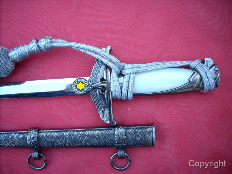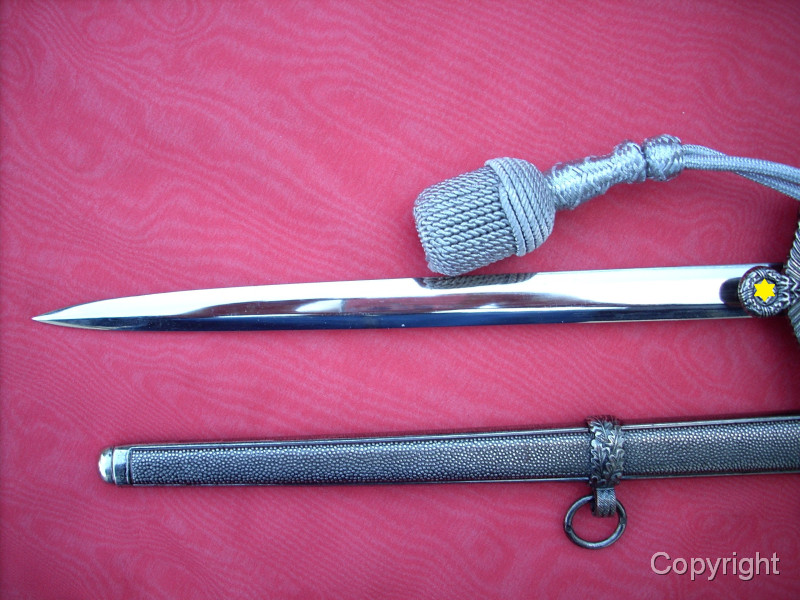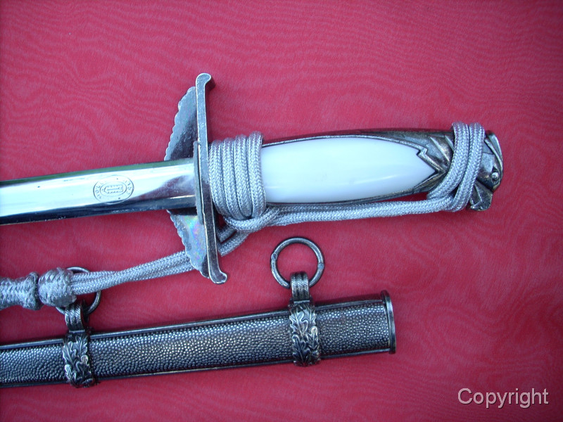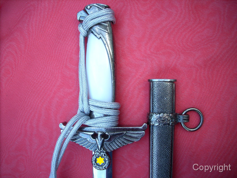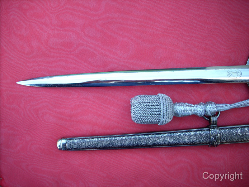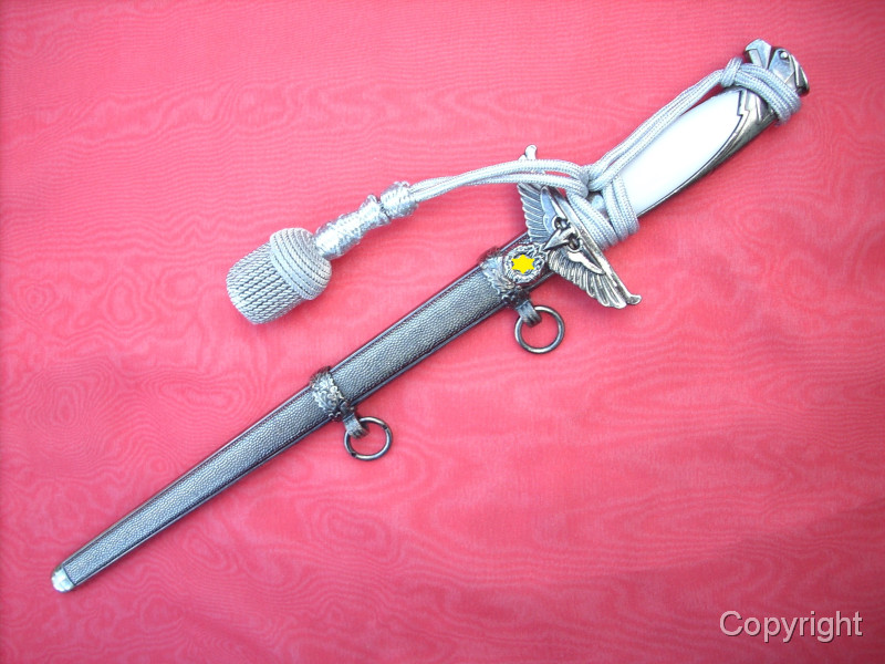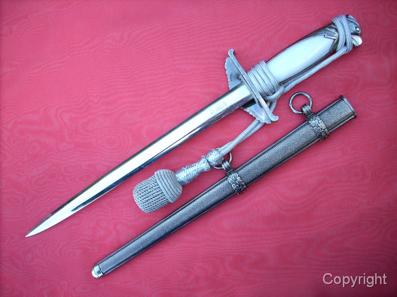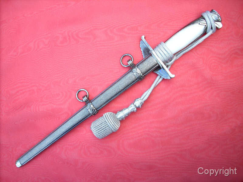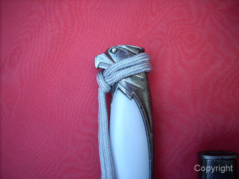 Sehr schöner Dolch für das Diplomatische Corps / Diplomatendolch mit Portepée. Griffschalen Perlmuttimitationen. Auf der Klinge eingeschlagenes Herstellerlogo: Höller-Berlin. Geringe Gebrauchsspuren. Zustand siehe Fotos, die, wie immer, Bestandteil der Artikelbeschreibung sind. Keine Garantie und keine Rücknahme.