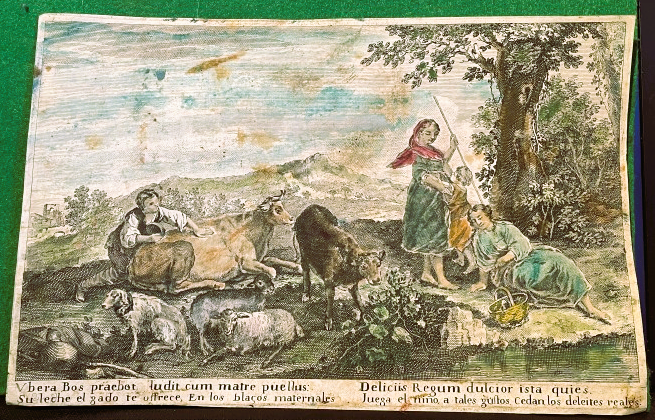 antiker Kupferstich um 1710 mit Aquarell gemalt ca 21 x 31 cm rückseitig beschriftet aus alter aus Sammlernachlass