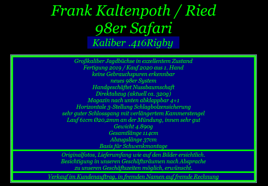 Frank Kaltenpoth / Ried 98er Safaribüchse Kaliber .416Rigby