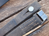 auf der Laschen Unterseite noch schwach ein Lederprägestempel erkennbar