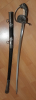 Löwenkopfsäbel mit Scheide.Scheide magnetisch mit belederung,diese etwas angestoßen und fleckig.Löwenkopf mit roten Augen.Klinge magnetisch,ohne Hersteller. Stichblatt klappbar.