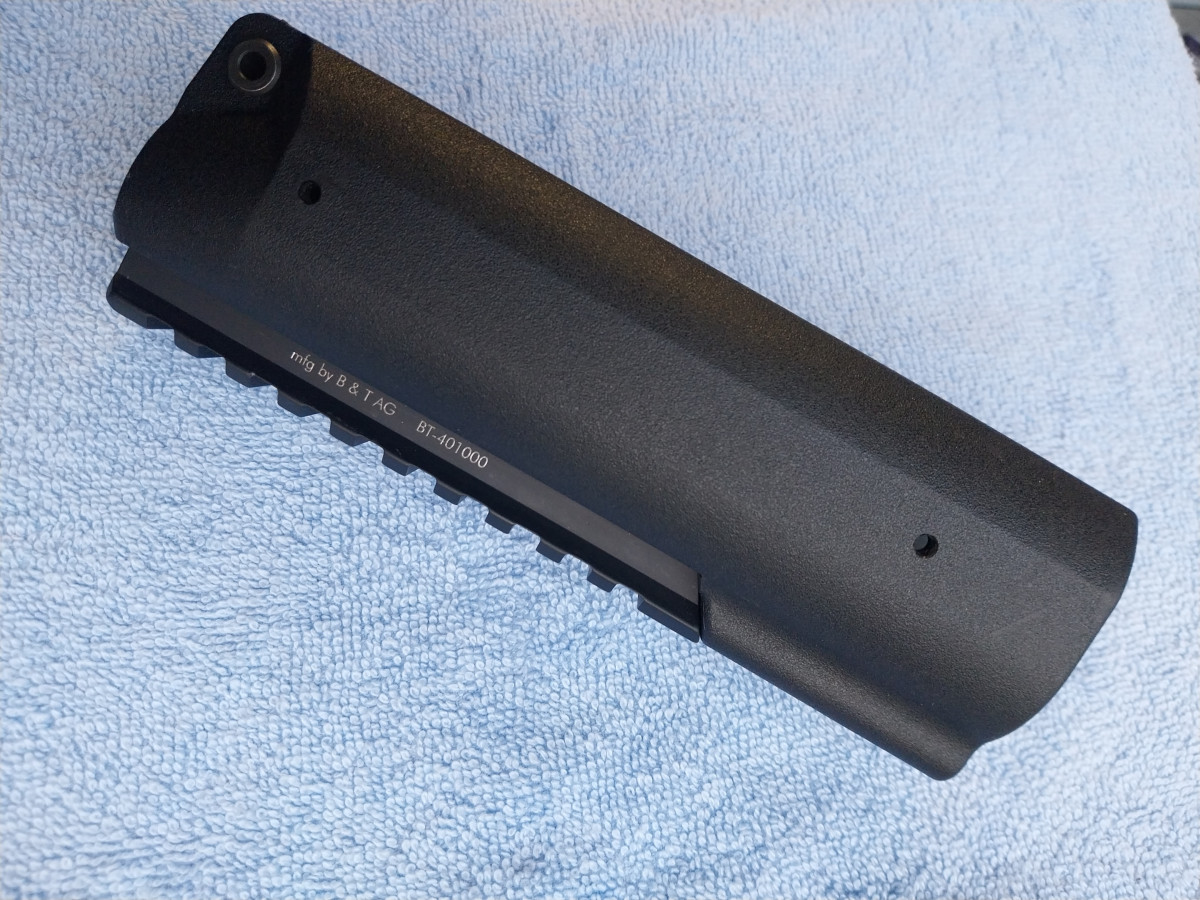 Zum Verkauf kommt ein B&T Handschutz für die H&K SP5, passt natürlichauch an Klone. Der Handschutz besitzt eine Schiene unten zur montage des Frontgriffs. Seitlich besitzt der Handschutz Bohrungen zur montage von weiteren Schienen. Die Schienen können bei B&T nachgekauft werden.