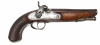 Sie bitten auf eine Perkussionspistole aus Spanien von Esteban Urrilegui(?) in Eibar, datiert 1835, mit glattem Lauf im Kaliber 17,5 mm, auf der Oberseite in Silber signiert. Leicht graviertes Schloss mit geschnittenem Hahn in Form eines Löwen. Vollschaft mit glatter eiserner Garnitur, links Gürtelhaken, eiserner Ladestock. Vorderschaft im Bereich des Abschlusses mit kleinen Rissen. Pistole mit Alters- und Gebrauchsspuren.Die Pistole wurde einmal zu Vorführung probegeschossen -Funktion einwandfrei.