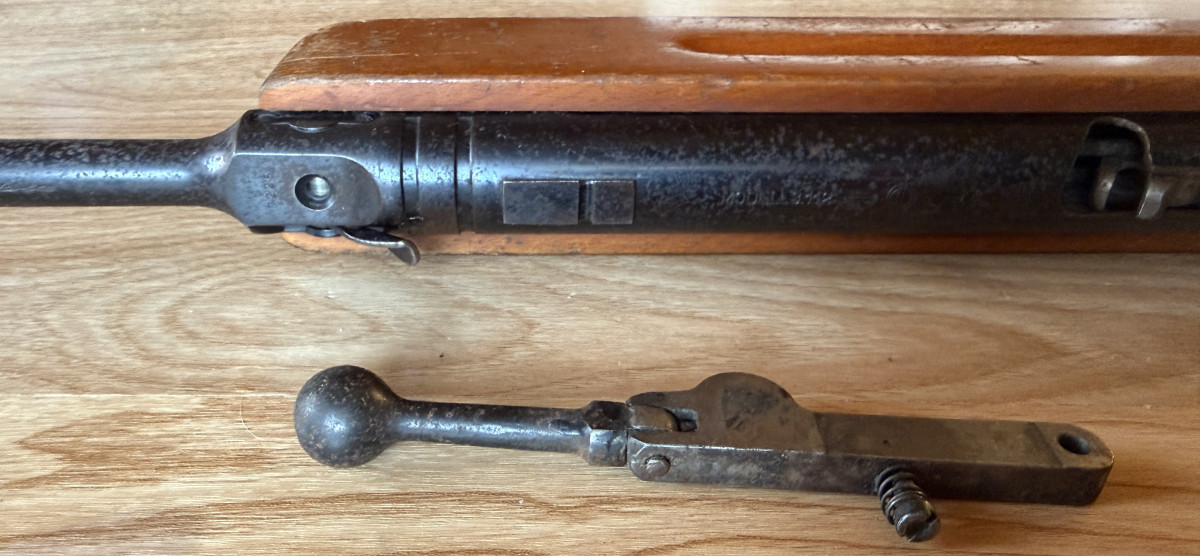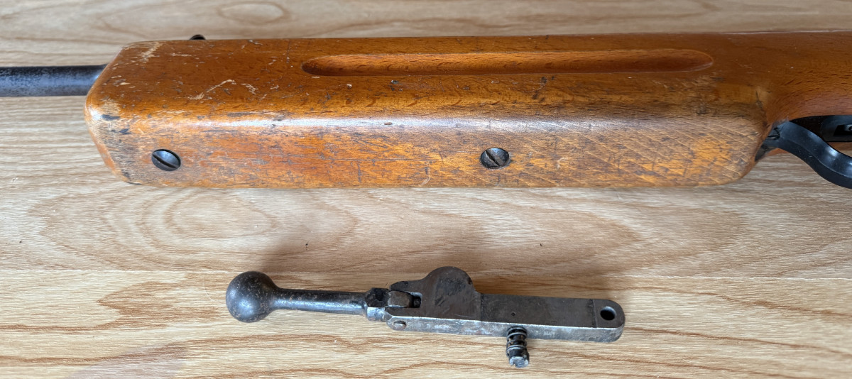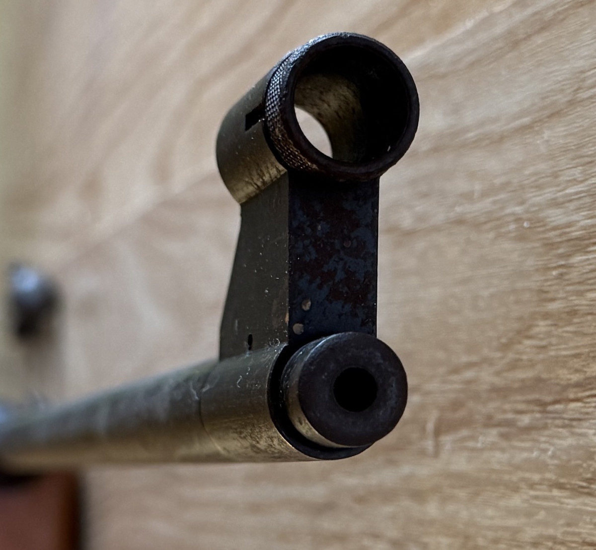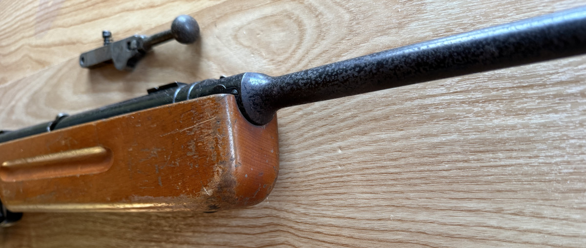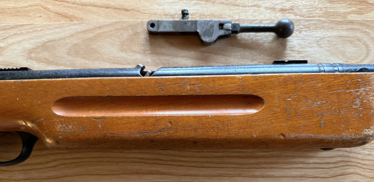 Kann es wegen dem fehlenden Repetier – Hebel – Oberteil nicht testen. Dabei liegt aber ein kompletter Repetierhebel der aber auch überholt werden muss. Ein Diopter ist nicht vorhanden.