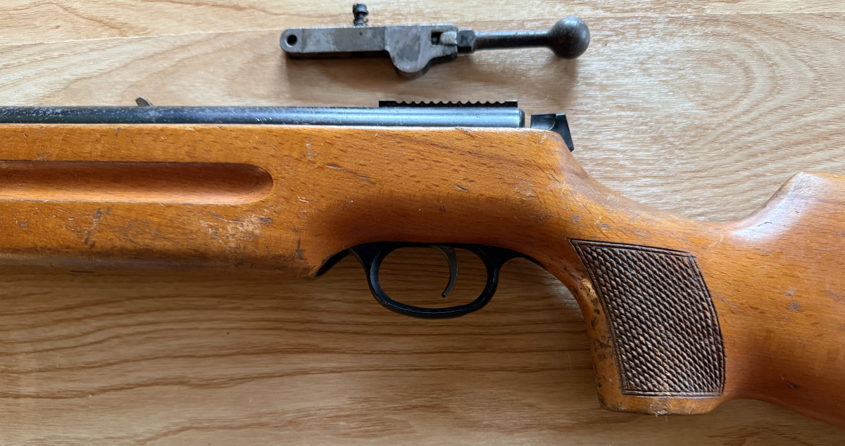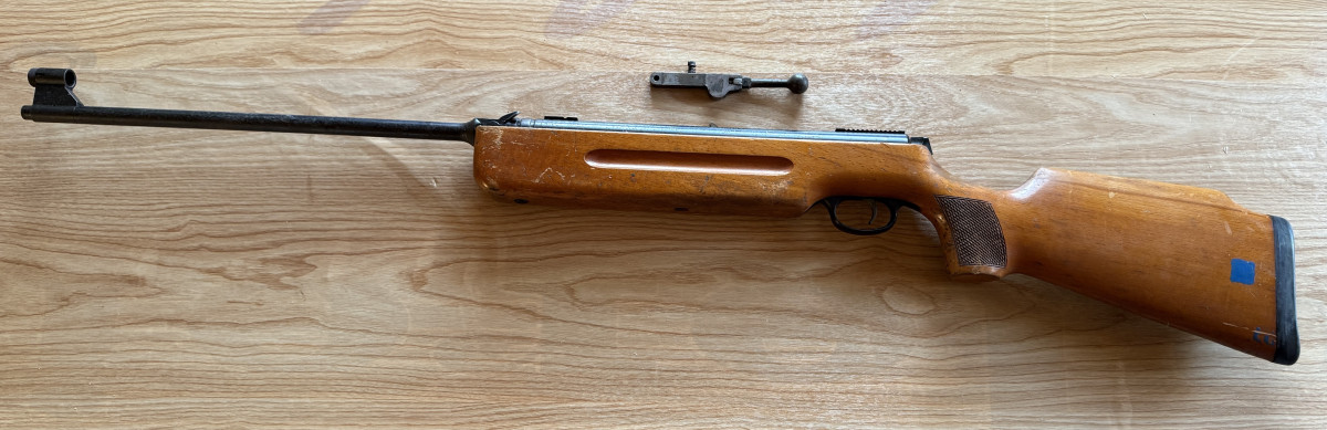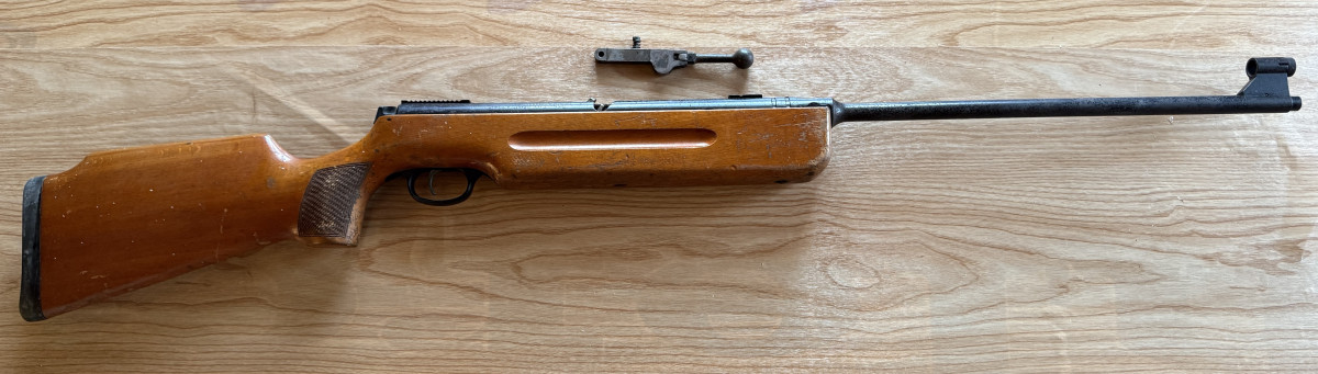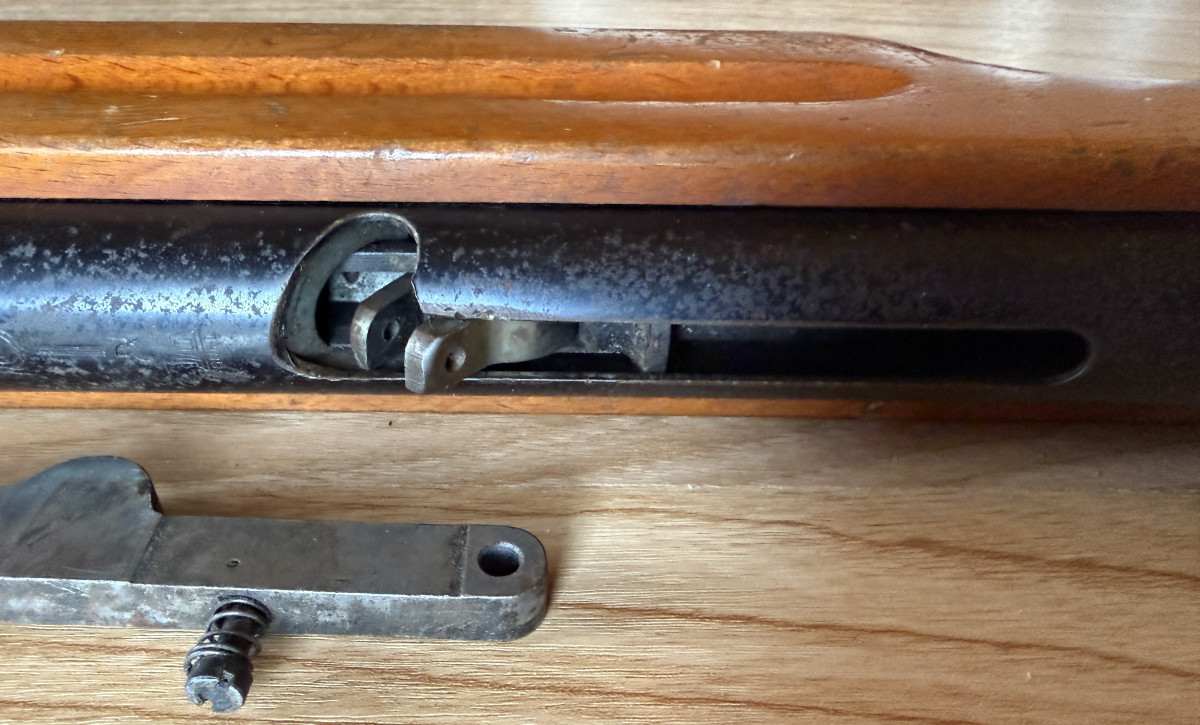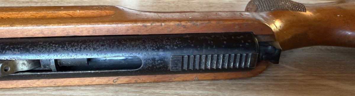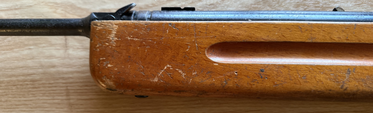 Kann es wegen dem fehlenden Repetier – Hebel – Oberteil nicht testen. Dabei liegt aber ein kompletter Repetierhebel der aber auch überholt werden muss. Ein Diopter ist nicht vorhanden.