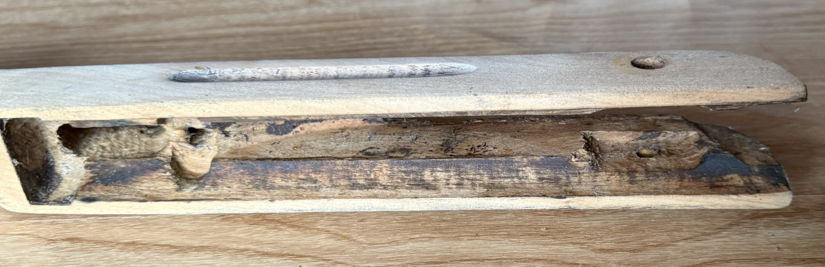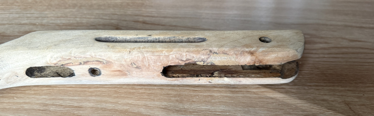 Der Schaft hat, an einem Bild zu sehen am linken Schaftende einen kleinen Riss.