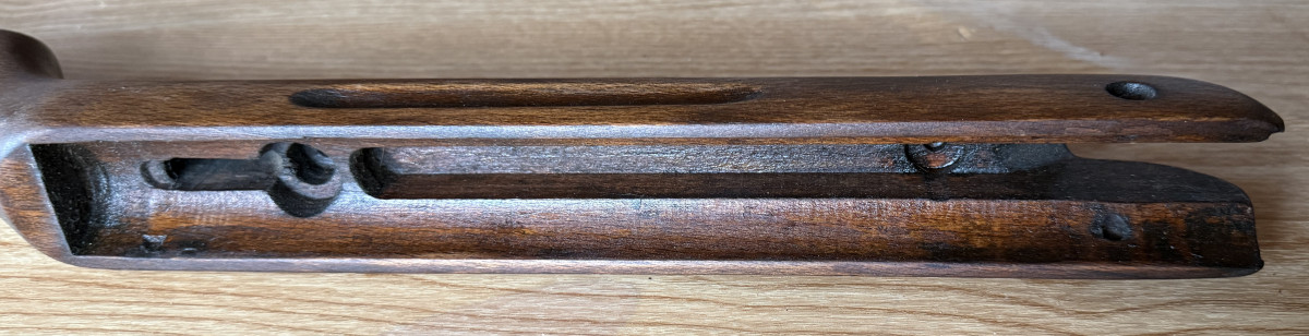 Ein netter eGunner hat mich darauf hingewiesen das es sich bei diesem Schaft um das Modell vom III-60 handelt, denn das III-56er Modell hat hinten die dicke Schraubkappe, dafür fehlt bei diesem Schaft die Aussparung.