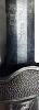 Klinge (fleckig, angeschliffen, verbogen und nicht proffesionel gerichtet) mit Herstellerlogo. Leichtmetallparierstange und -knauf, orangefarbener Kunststoffgriff ( leicht bestoßen) mit Drahtwicklung (alle Teile fest und Zugehöhrig!). Eisenscheide. Länge ca. 38,5 cm. (siehe Fotos, alle NS abzeichen unkenntlich nurauf den Bildern).