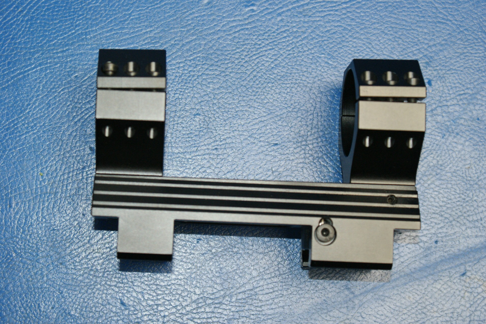 Ringe ⌀ 34mm, Bauhöhe 36mm, Vorneigung 30 MOA, für Picatinny Schiene aus Aluminium, Rückstoßstollen aus Stahl eingesetzt, Länge 120mm