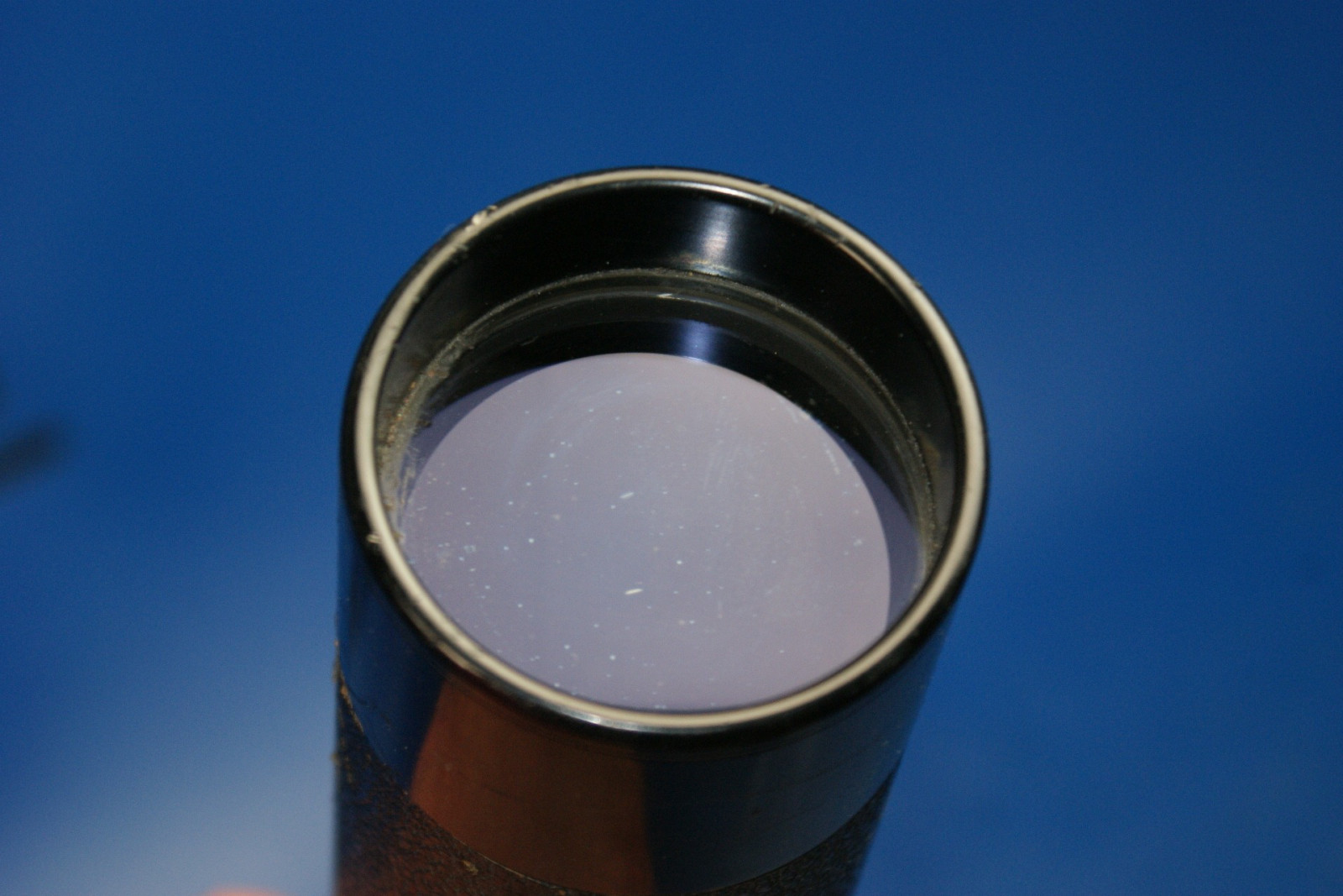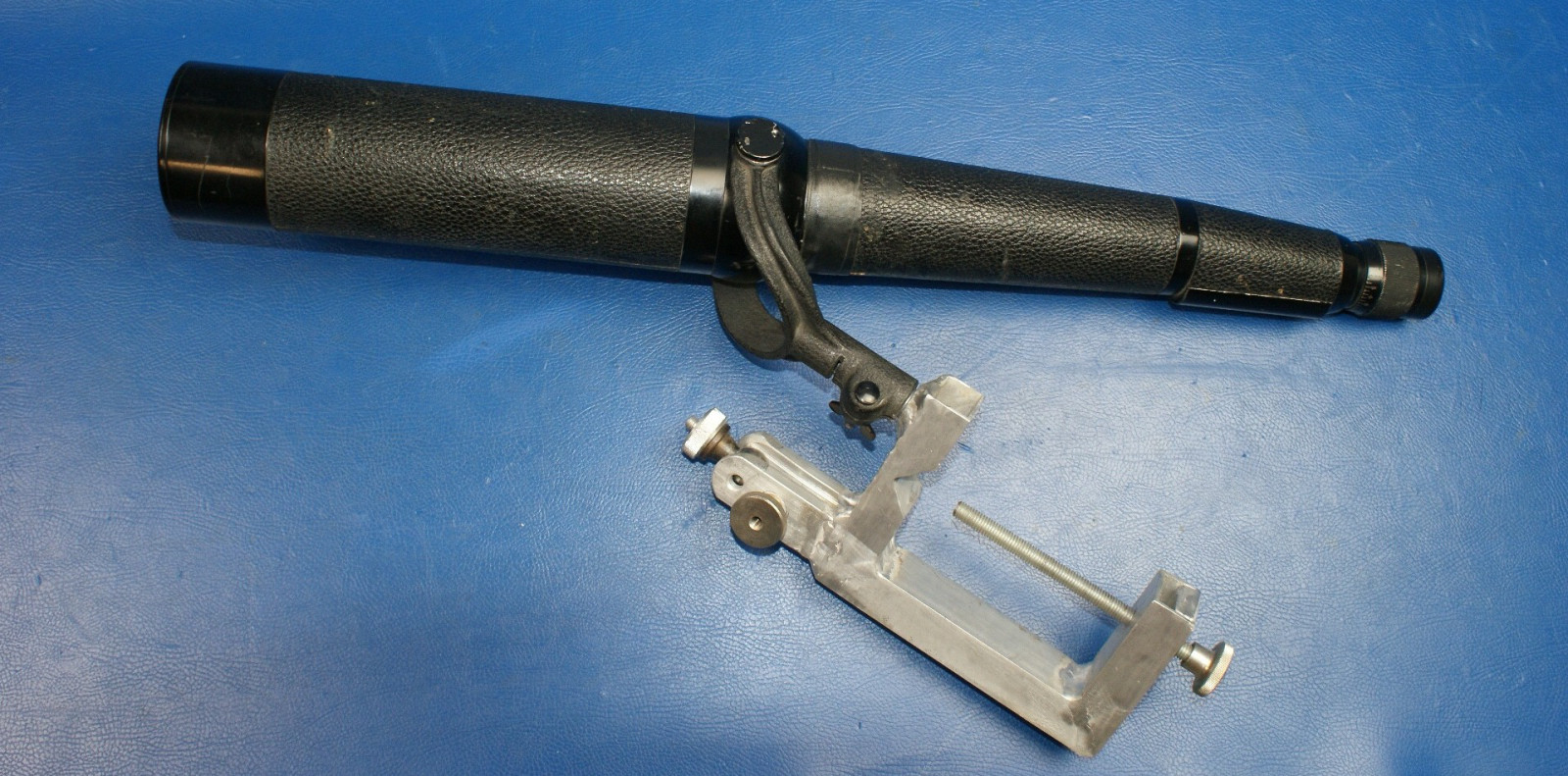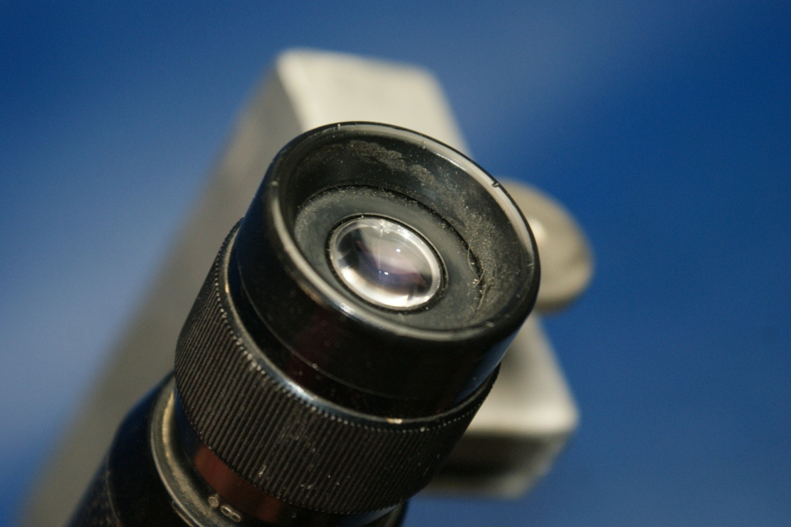 Gebrauchsspuren. Durchsicht klar. Mit Befestigungsmontage an Stab oder Tisch.