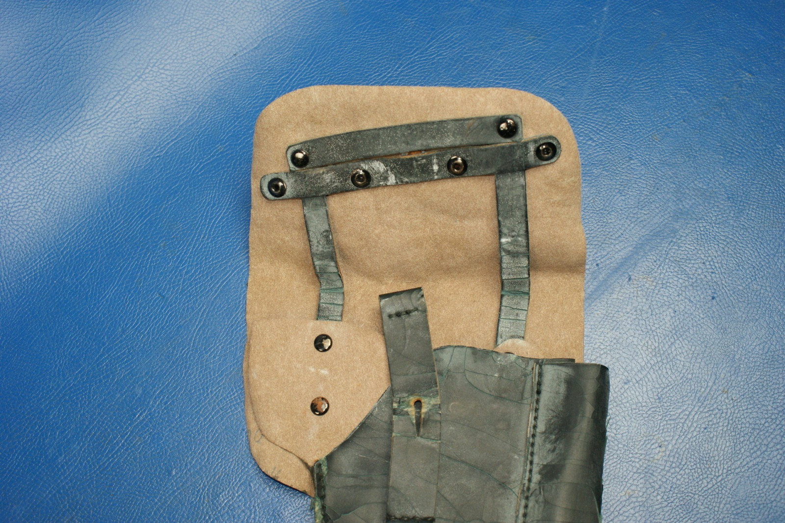 Leder spröde und Riemen gelöst. Starke Gebrauchsspuren.