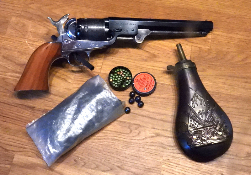 Vorderladerrevolver hat einen angenehmen Schlossgang und guten Abzug. Nußbaum-Holzgriffschalen.
