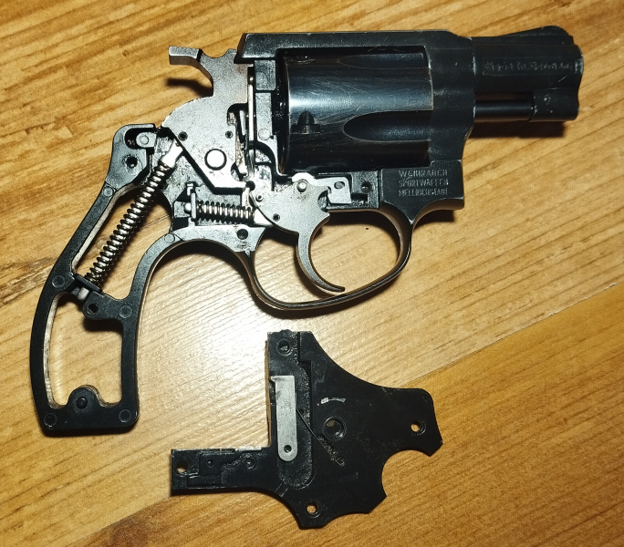 Verkaufe hier einen defekten HW37. Einzig bekanntes Fehlteil ist die Feder von der Trommelarretierung. Griffschalen sind NICHT dabei! Gebrauchsspuren siehe Bilder.