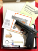 Im Originalkarton mit Beschreibung und Garantiekarte, einem 2. Magazin , dem noch in Ölpapier verpackten Abschußbecher, der unbenutzten Reinigungsbürste und natürlich der Anstecknadel….Kompletter und sauberer geht es nicht.