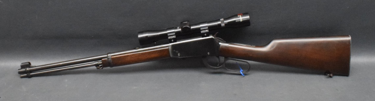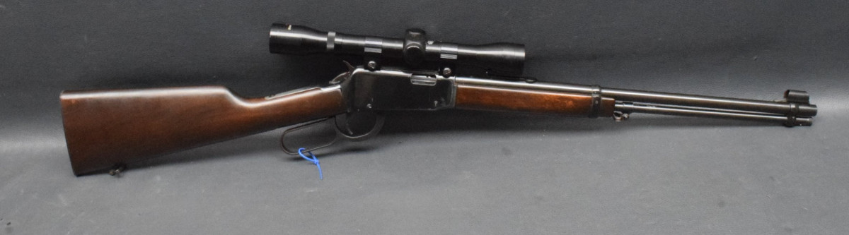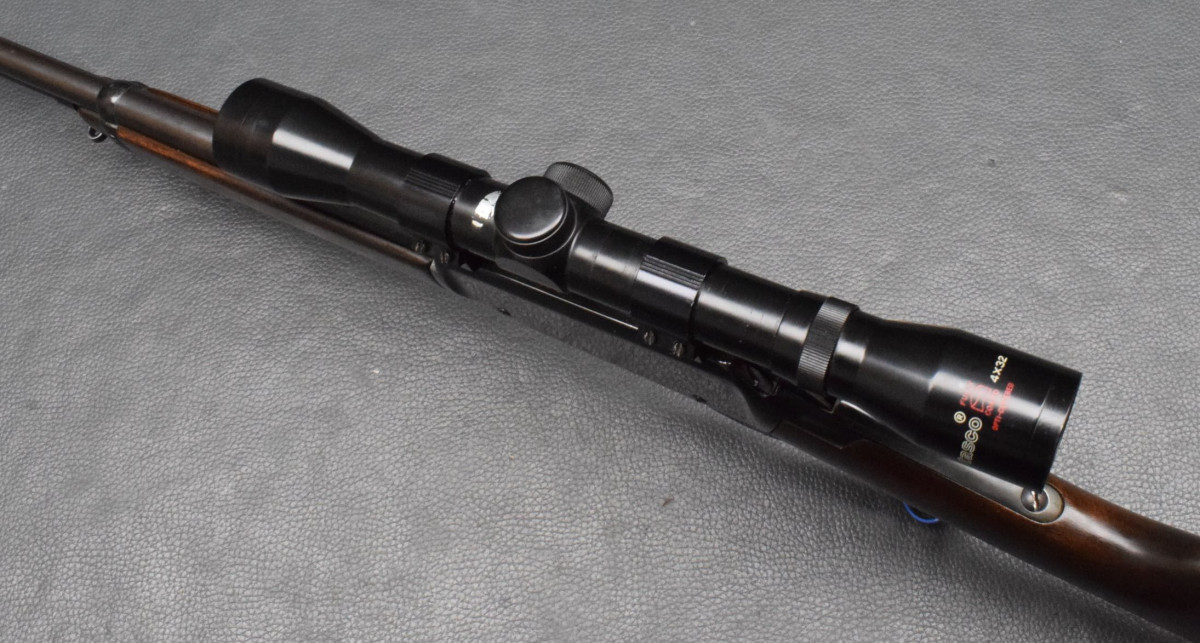 Montiert mit Zielfernrohr Tasco 4x32 Abs.1, mittels Aufschubmontage mit 25,4mm Ringen.