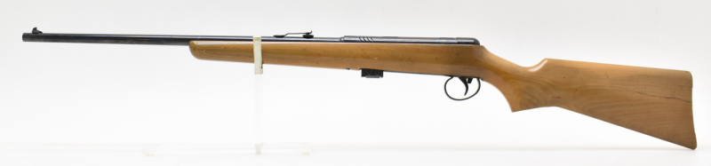 Handlicher Selbstlader mit 5-Schuss Magazin und Druckpunktabzug. Schaftlänge gemessen von vorderen Abzug bis Mitte Schaftkappe 36cm. Die Waffe hat deutliche, dem Alter entsprechende Gebrauchsspuren.